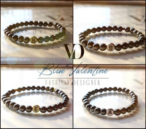 Bracciali in ematite argento scuro con lettera in ottone »