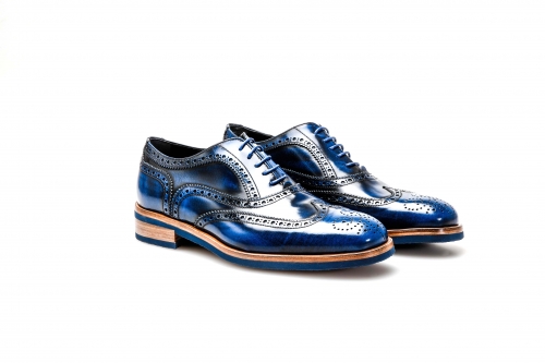 Francesina uomo coda di rondine spazzolato blu - calzata larga »