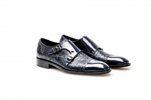 D’Annunzio, Doppia Fibbia Stampato Damasco Blu, Puntale shiny - lucido blu scuro,... »