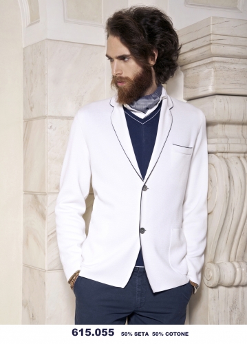 Giacca bianca con risvolti neri in 50% seta e 50% cotone »