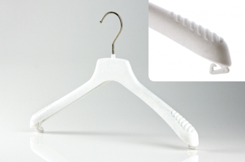 Tutti i nostri appendini in plastica si possono arricchire di finiture particolari, quali la vellutazione parziale o totale, conferendo all’appendino stesso un tocco di classe, il soft touch che darà un effetto satinato agli appendini su base trasparente mentre renderanno i colori più caldi e morbidi al tatto gli appendini in plastica colorata.