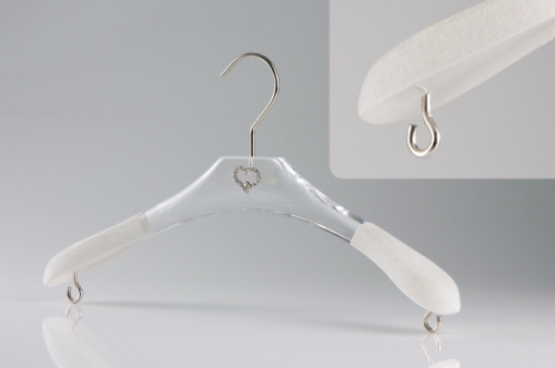 Finiture particolari, ottenute con processi innovativi, permettono di personalizzare l’appendino anche su disegno del cliente stesso. Tutte le linee dal baby al jr, dall’uomo, alla donna, sono correlate da una serie di accessori quali ganci, gancetti, aste con pinze in metallo, aste in plexiglass, antiscivoli ,dai più tradizionali come il velluto alle gocce attacca - stacca, ai soft, con l’unico scopo di dare al cliente finale un appendino versatile ed elegante allo stesso tempo.