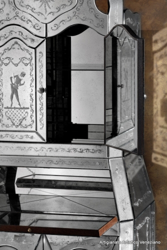 Mirabile riproposizione di mobile in vetro molato ed inciso a mano con ruota in pietra arenaria.