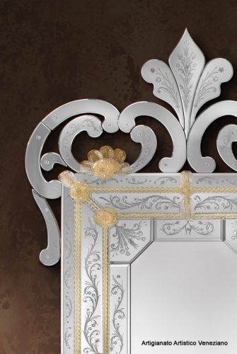 Specchio veneziano, cm 104 x 167, realizzato secondo l’antica tradizione dei maestri specchieri muranesi.