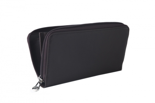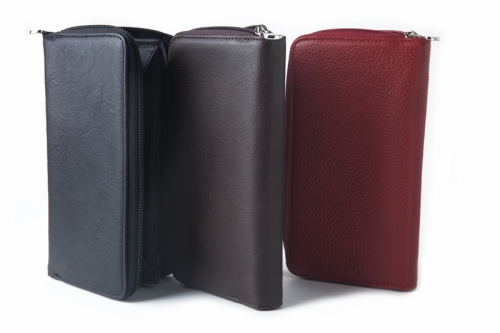 Un elegante borsello con una chiusura a zip che lo avvolge. Oltre otto tasce per le carte di credito lo spazio interno è diviso in due scomparti multifunzionali con una sezione per le monete a zip. Un perfetto portafoglio di ottima qualità e funzionalità.