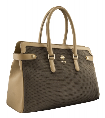BORSA DA DONNA COMPOSTA DA INNESTI DI PELLE SUEDE SCAMOSCIATA E NAPPA PIENO FIORE