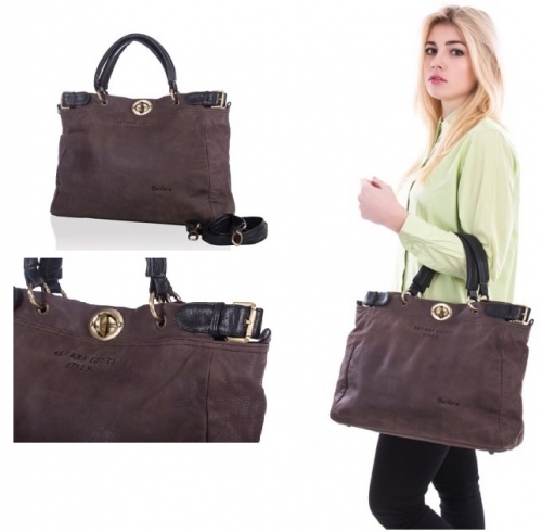 Borsa borsello Severe Gusts Italy,tortora e marrone con cuciture testa di moro, con... »
