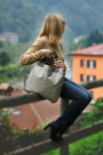 Severe Gusts Italy, Borsa Borsello grigio con manici e tracolla pelle nero opaco. Con tracolla removibile e borsello interno estraibile. Personalizzabile con nome o con altra scritta a vostro piacere.
