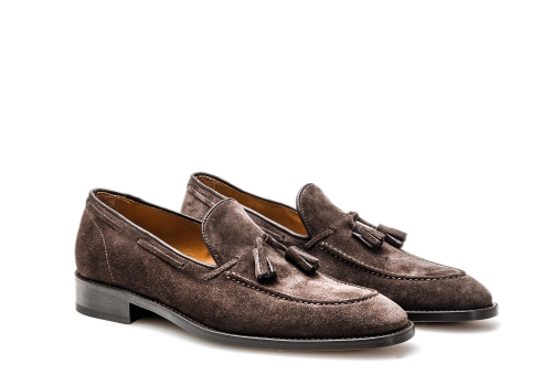 Mocassino con nappina scamosciato marrone testa di moro - calzata comoda