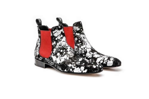 Roberto, Stivaletto spruzzo argento con elastico rosso, suola cuoio chiuso