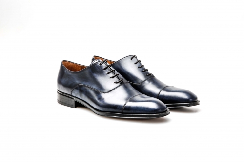 Toto’, Francesina deco’ blu scuro con puntina, suola gomma vibram, lacci blu