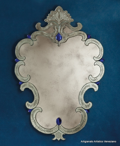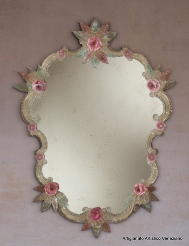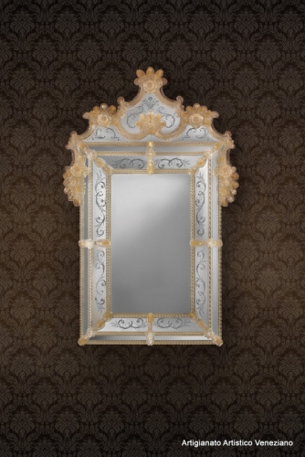 Specchio veneziano, cm 112 x 77, realizzato secondo l’antica tradizione dei maestri specchieri muranesi.