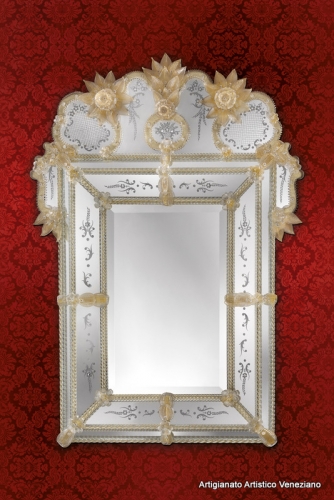 Specchio veneziano, cm 143 x 113, realizzato secondo l’antica tradizione dei maestri specchieri muranesi.