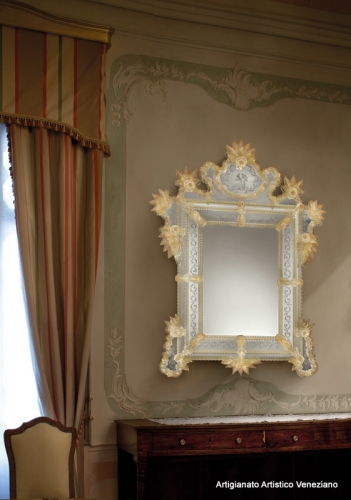 Specchio veneziano, cm 90 x 126, realizzato secondo l’antica tradizione dei maestri specchieri muranesi.