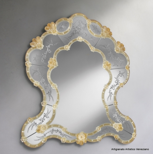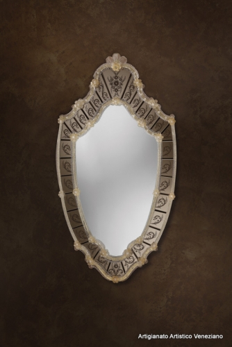 Specchio veneziano, cm 68 x 127, eseguito secondo l’antica tradizione dei maestri specchieri muranesi.