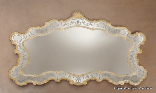 Specchio veneziano, cm 164 x 200, realizzato secondo l’antica tradizione dei maestri specchieri muranesi.