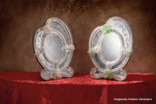 Specchi da tavolo, cm 31 x 44, eseguiti secondo l’antica tradizione dei maestri specchieri muranesi.