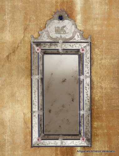 Specchio veneziano, cm 61 x 110, realizzato secondo l’antica tradizione dei maestri specchieri muranesi.