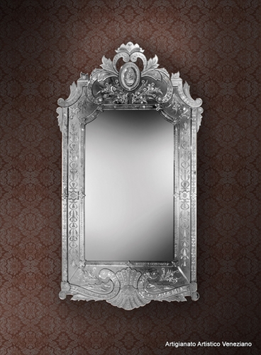 Specchio veneziano, cm 103 x 172, realizzato secondo l’antica tradizione dei maestri specchieri muranesi.