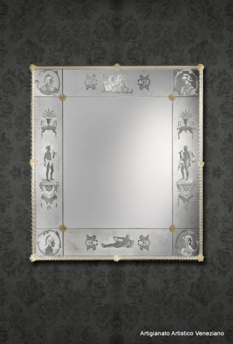 Specchio veneziano, cm 100 x 90, realizzato secondo l’antica tradizione dei maestri specchieri muranesi.
