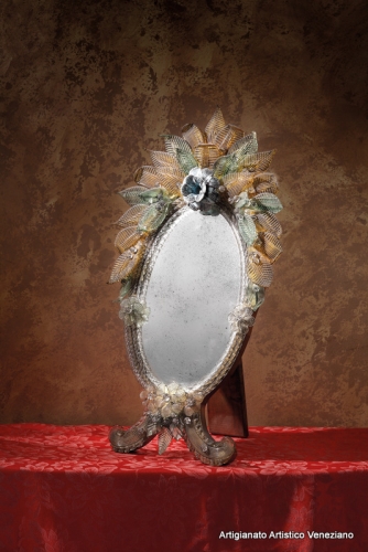 Specchio da tavolo, cm 30 x 60, realizzato secondo l’antica tradizione dei maestri specchieri muranesi.