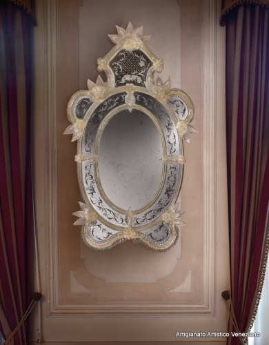 Specchio veneziano, cm 86 x 137, realizzato secondo l’antica tradizione dei maestri specchieri muranesi.