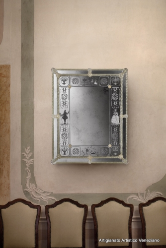 Specchio veneziano, cm 87 x 120, realizzato secondo l’antica tradizione dei maestri specchieri muranesi.